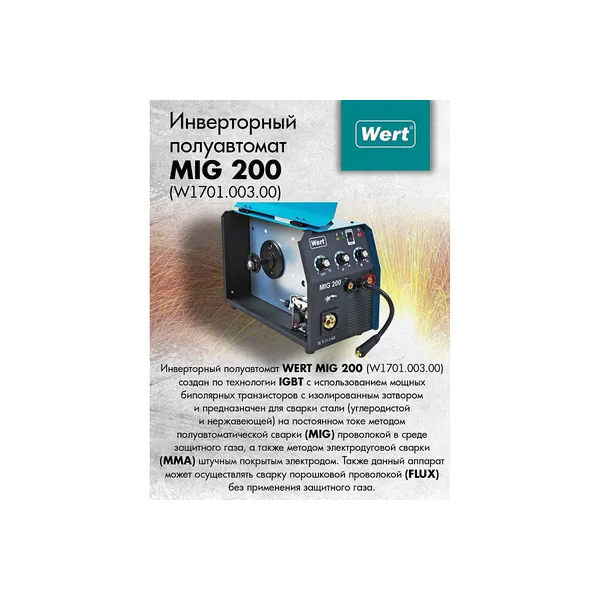 - • сварочный полуавтомат инверторный Wert MIG 200 (W1701.003.00);