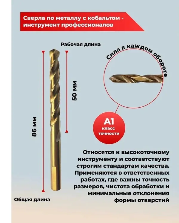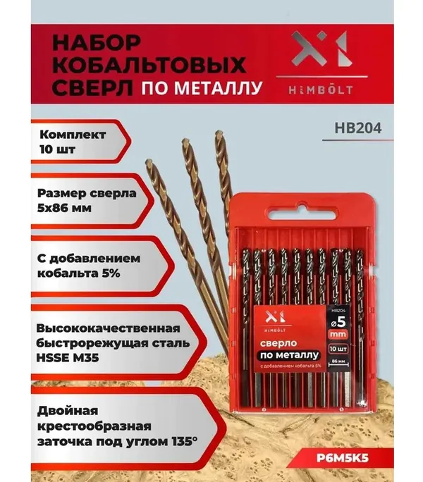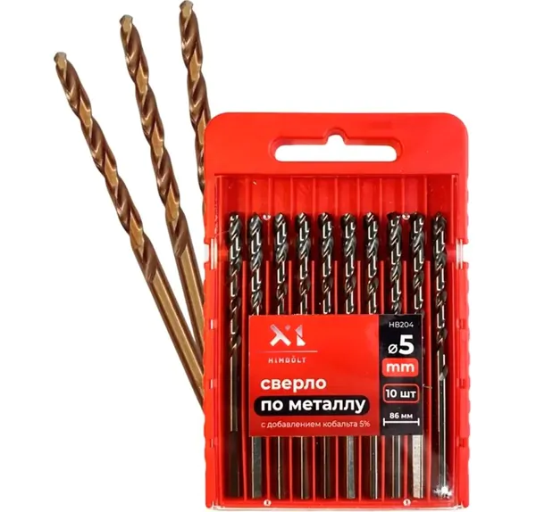 - • сверло по металлу кобальтовое HIMBOLT 5% P6M5K5 5,0 мм 10 шт.бокс HB204.