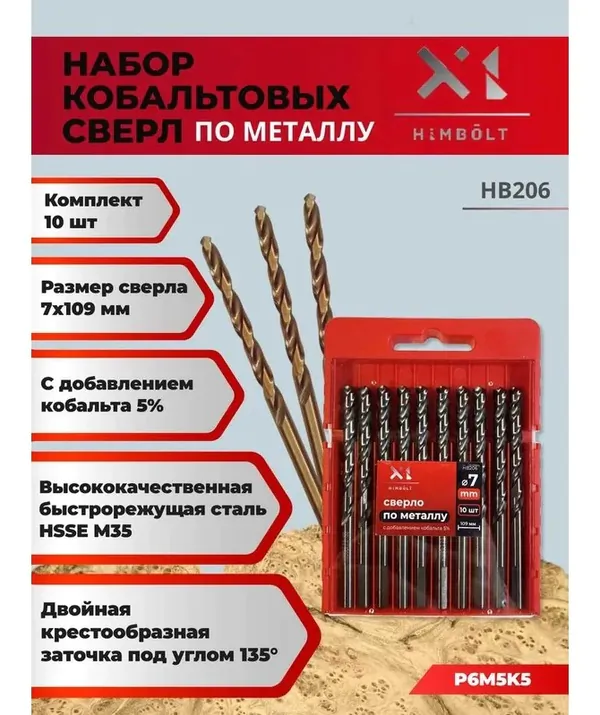 - • сверло по металлу кобальтовое HIMBOLT 5% P6M5K5 7,0 мм 10 шт.бокс HB206.