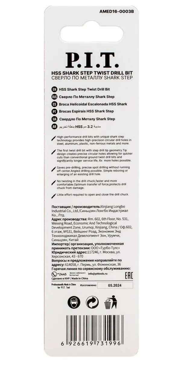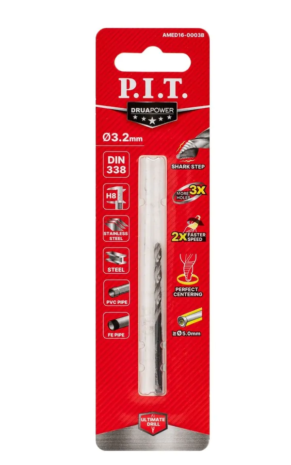 - • сверло по металлу самоцентрирующееся P.I.T. DRUA SharkStep 3,2 мм 65*36 мм AMED16-0003B.