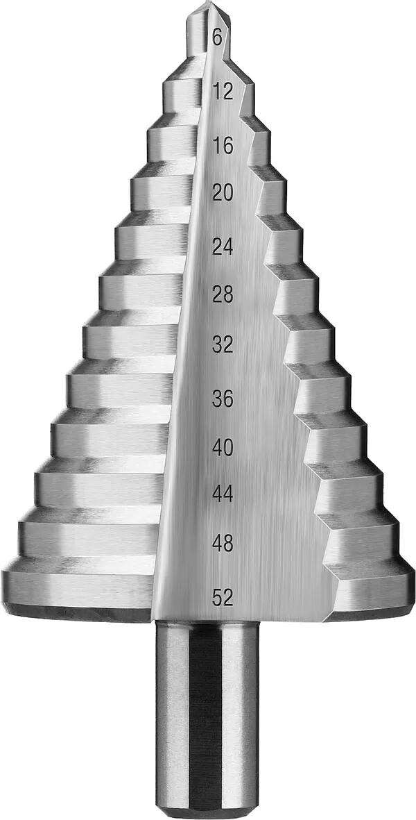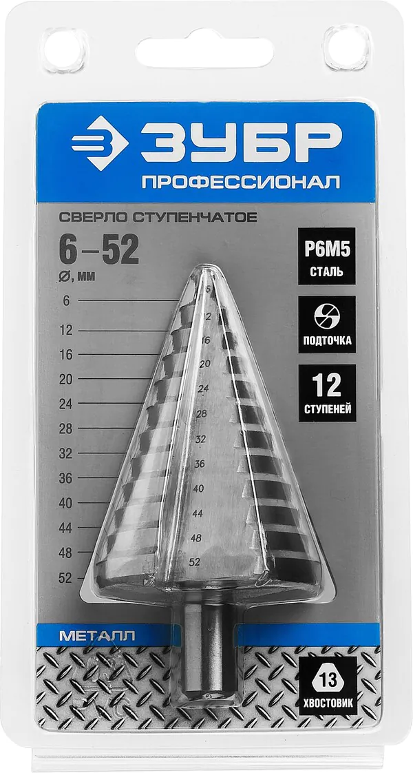 - ЗУБР 6-52 мм, 12 ступеней, сталь Р6М5, ступенчатое сверло, Профессионал (29670-6-52)