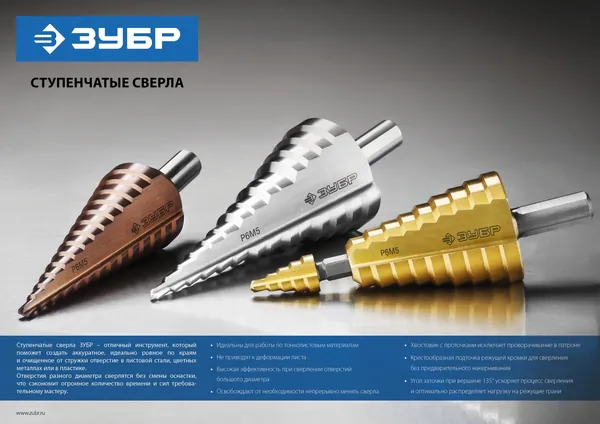 Сверло ступенчатое Зубр Профессионал Кобальт 4-30мм, 14ступеней, Р6М5 29672-4-30-14_z01