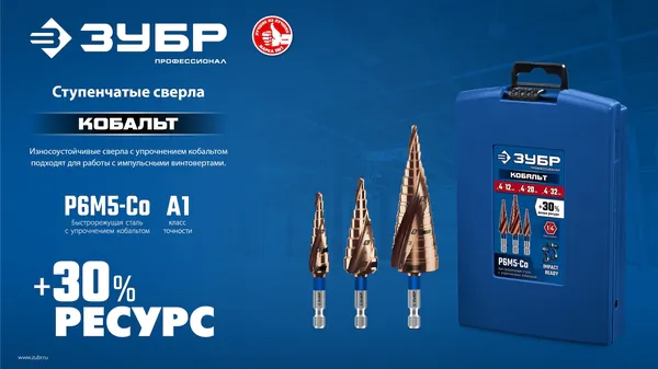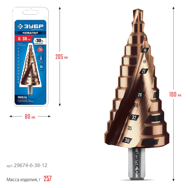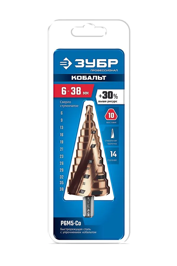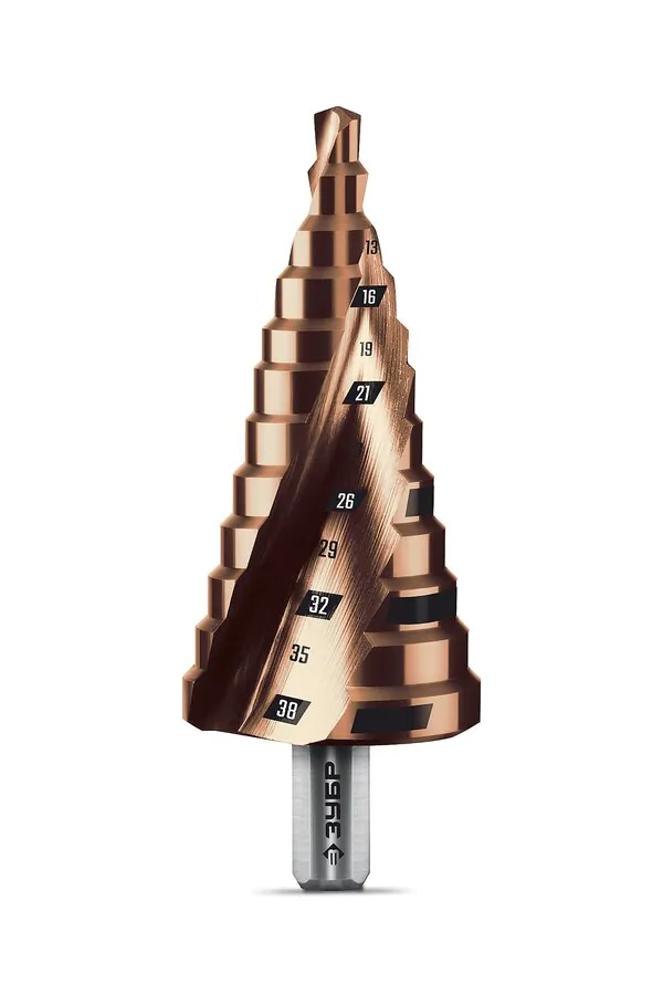 - ЗУБР КОБАЛЬТ 6-38мм, 12 ступеней, винтовая проточка, сверло ступенчатое, ПРОФЕССИОНАЛ (29674-6-38-12)