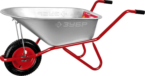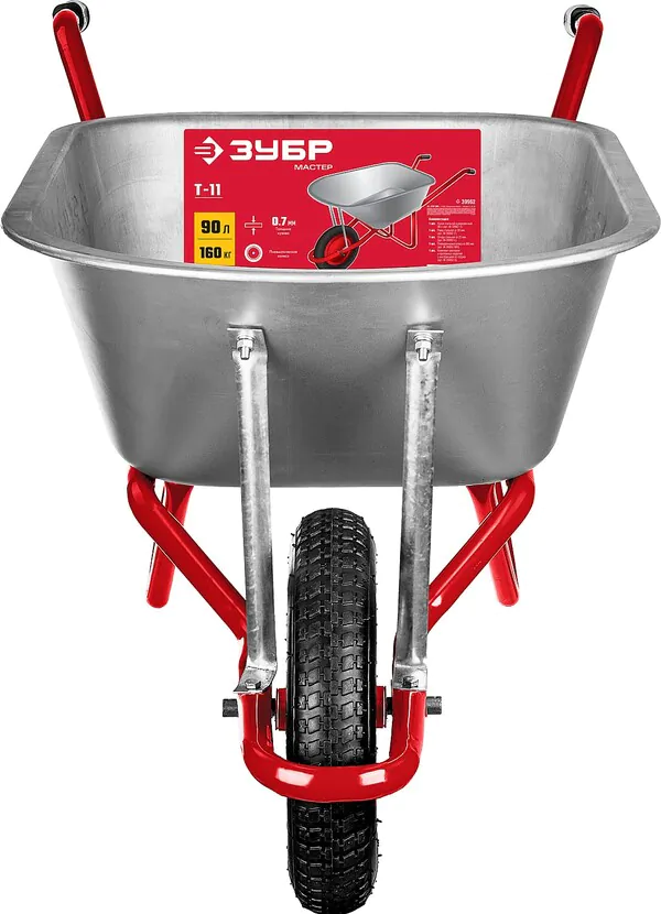 Тачка садово-строительная ЗУБР Т-11, 90 л, 160 кг, одноколесная, пневматическое колесо 39962