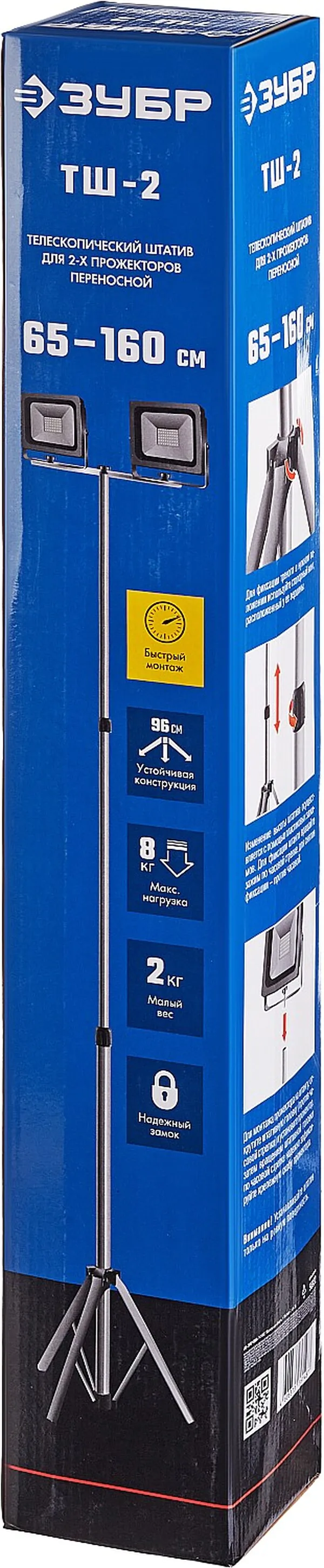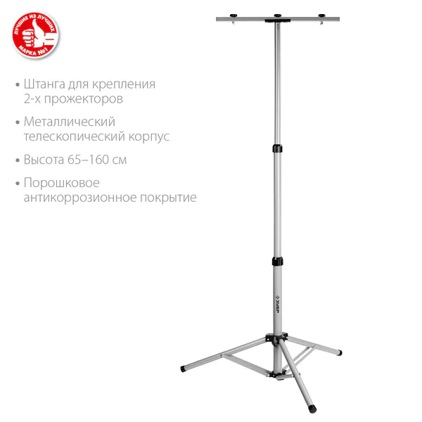 - • телескопический штатив ЗУБР 1.6 м для 2х прожекторов Профессионал 56932.