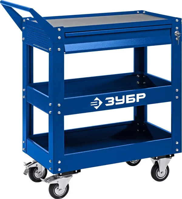 - ЗУБР 820 х 405 х 955 мм, инструментальная тележка с выдвижным ящиком + 2 полки, Профессионал (38914)
