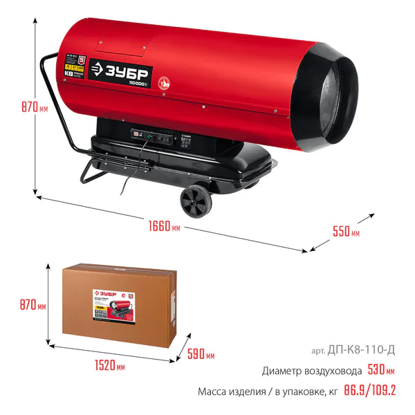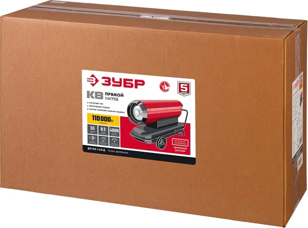 Тепловая пушка дизельная Зубр прямой нагрев 110 кВт ДП-К8-110-Д