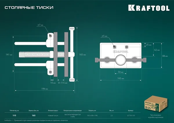 - KRAFTOOL 165 мм, столярные тиски (32718-150)