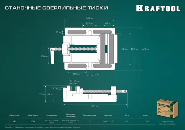 - KRAFTOOL 150 мм, станочные сверлильные тиски (32715-150)