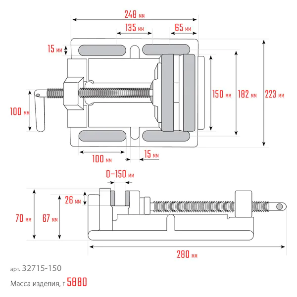 Тиски сверлильные KRAFTOOL 150 мм, станочные 32715-150