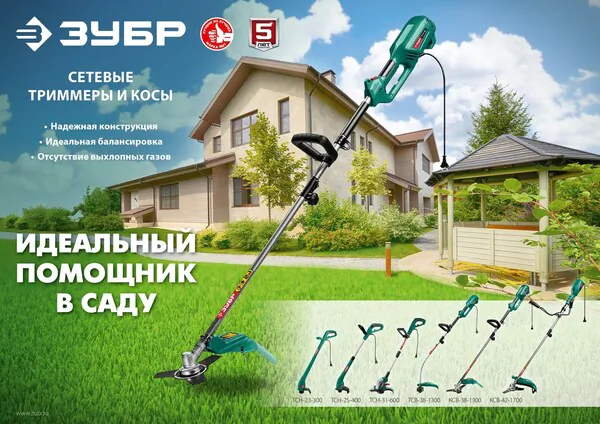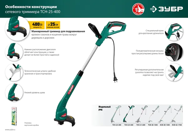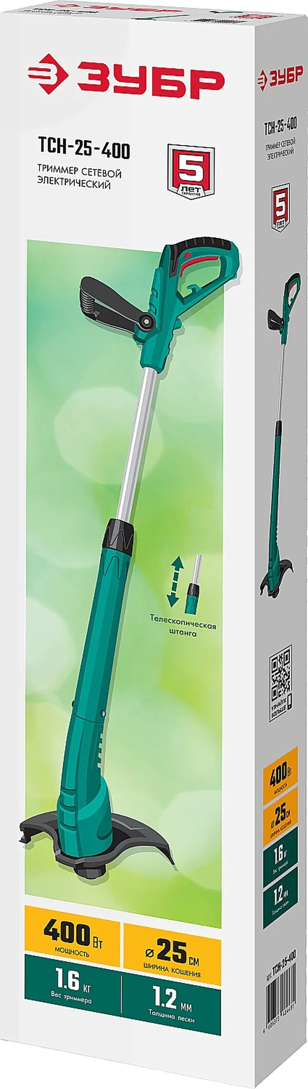 - ЗУБР 400 Вт, ш/с 25 см, сетевой триммер (ТСН-25-400)