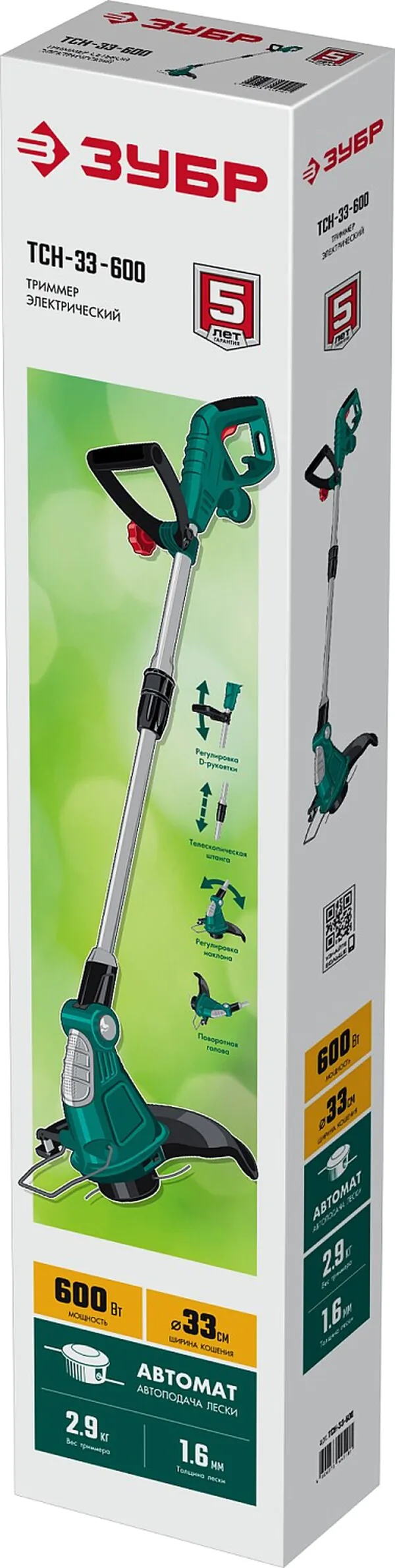 - ЗУБР 600 Вт, ш/с 33 см, сетевой триммер (ТСН-33-600)