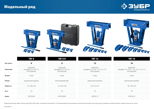 - ЗУБР ТГВ-16, 16 т, ручной вертикальный гидравлический трубогиб, Профессионал (43078-16) 43078-16_z01
