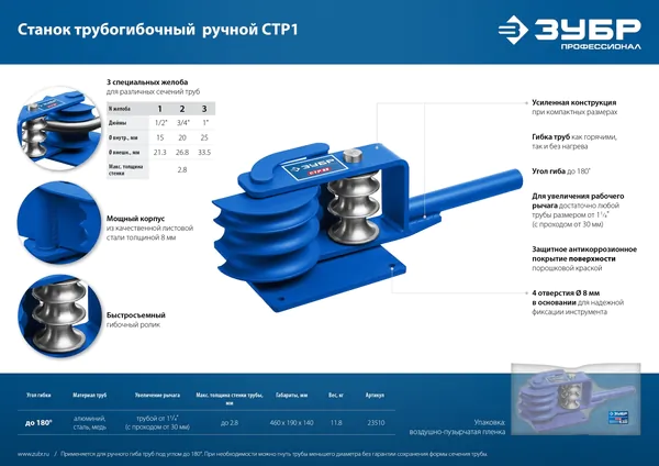 - ЗУБР СТР1, станок трубогибочный ручной, Профессионал (23510)