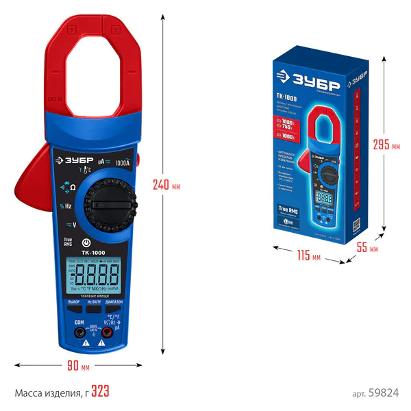 - ЗУБР ТК-1000 цифровые токовые клещи (59824) 59824_z01