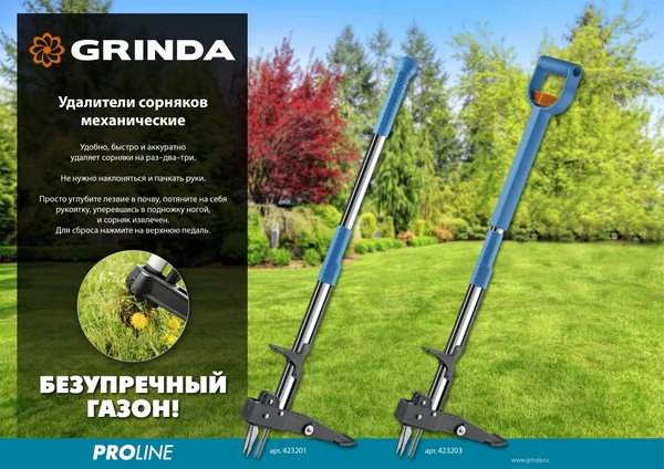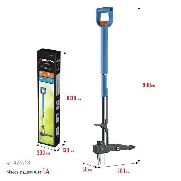 - GRINDA CYCLONE-T, длина 980 - 1170 мм, алюминиевый корпус, пластиковая D-образная рукоятка, телескопический удалитель сорняков, PROLine (423203)