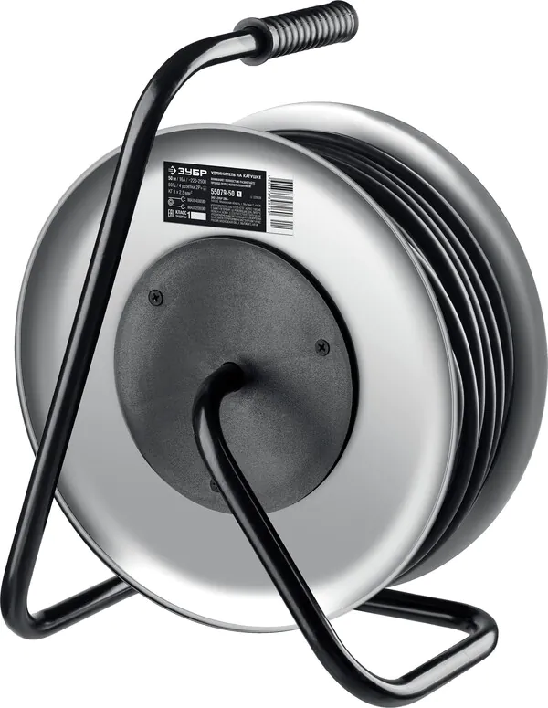 - ЗУБР КГ-325, КГ, 3 x 2.5 мм2, 50 м, 4000 Вт, IP44, силовой удлинитель на стальной катушке, Профессионал (55079-50) 55079-50_z01