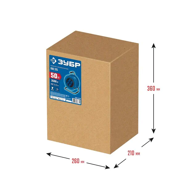 - ЗУБР ПВС 315, ПВС, 3 x 1.5 мм2, 50 м, 3500 Вт, IP44, силовой удлинитель на катушке, Профессионал (55081-50) 55081-50_z01