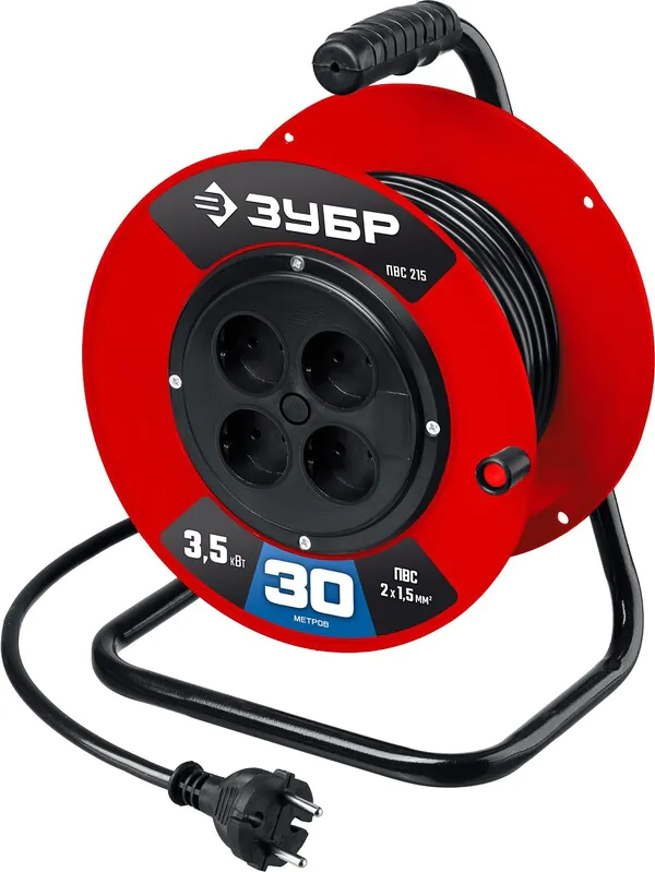 - ЗУБР ПВС-215, ПВС, 2 х 1.5 мм2, 30 м, 3500 Вт, силовой удлинитель на катушке (55103-30)