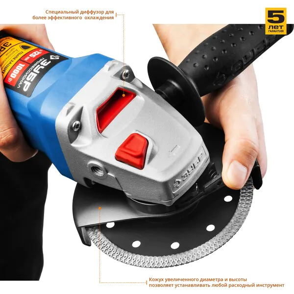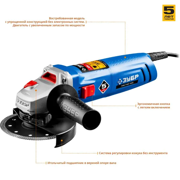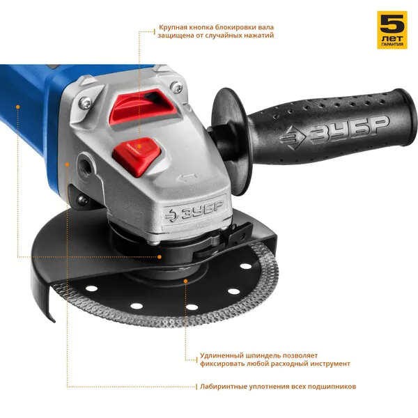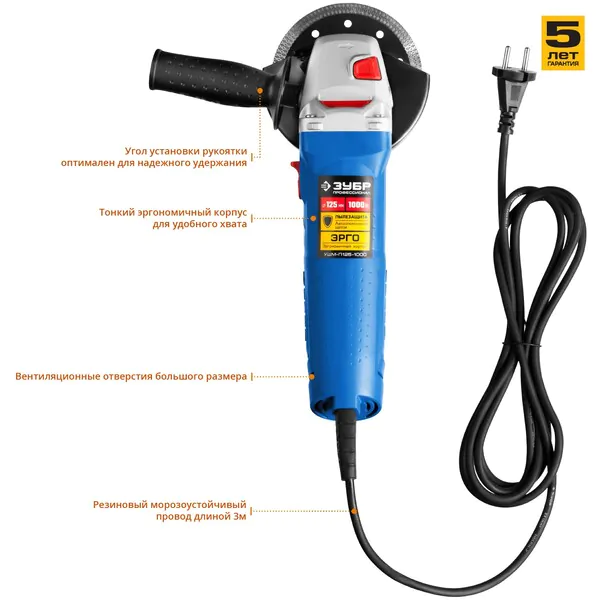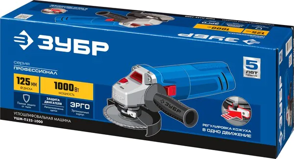 - ЗУБР 1000 Вт, d125 мм, УШМ, Профессионал (УШМ-П125-1000)