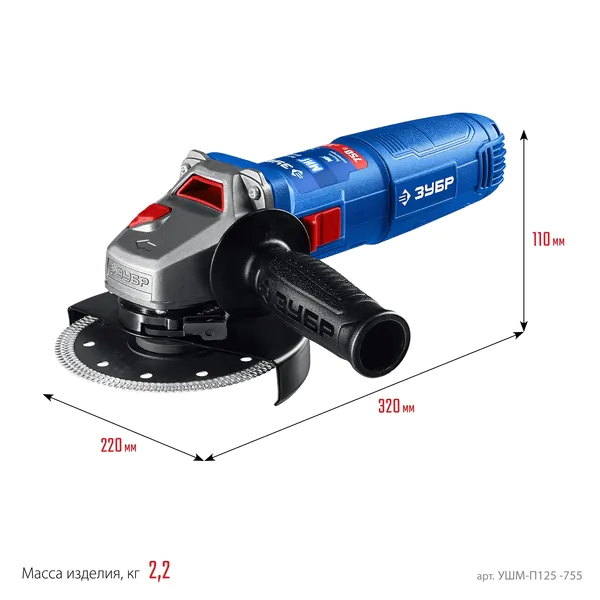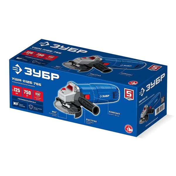 - ЗУБР Компакт, 750 Вт, d125 мм, УШМ, фланец ″МИГ″, Профессионал (УШМ-П125-755)