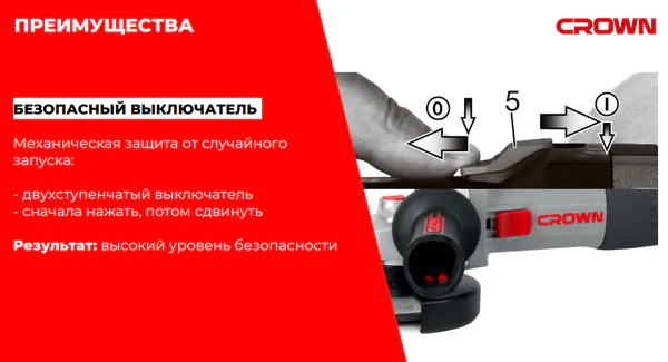 - • угловая шлифовальная машина CROWN 900Вт М14 125 мм CT13571-125R;