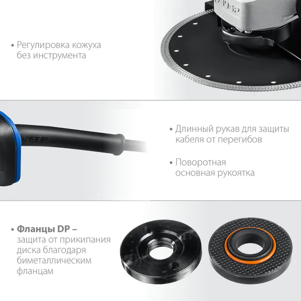 Max мощность, Вт2600Диаметр диска, ммЭлектронная регулировка оборотовНетПлавный пускДаПредохранительная муфтаНетПоддержание постоянных оборотов под нагрузкойНетЗащита от непреднамеренного пускаДаНаличие виброручкиНетБыстрозажимная гайка SDSНетРезьба шпинделяЗащита от перегреваДаСуперфланецДаПосадочный диаметрФункция поворотаДаУпаковкаБоковая рукояткаДаЭлектронная защита от перегрузокНетФиксация куркаДаНапряжение питания, ВУсловия гарантии60 месяцевЧисло оборотов, об/минПоворотная рукояткаДаРегулировка положения кожуха без инструментаДаДлина кабеля, м3Габариты товара (ДхШхВ), мм605*185*120Масса нетто, кг7.5Комплектация