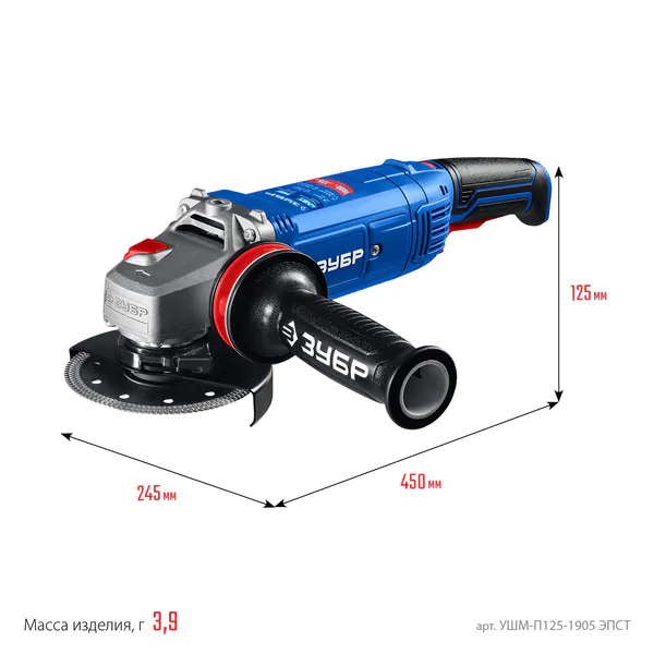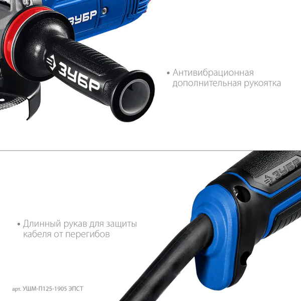- ЗУБР 1900 Вт, d125 мм, УШМ, регулировка оборотов, фланец ″МИГ″, Профессионал (УШМ-П125-1905 ЭПСТ)