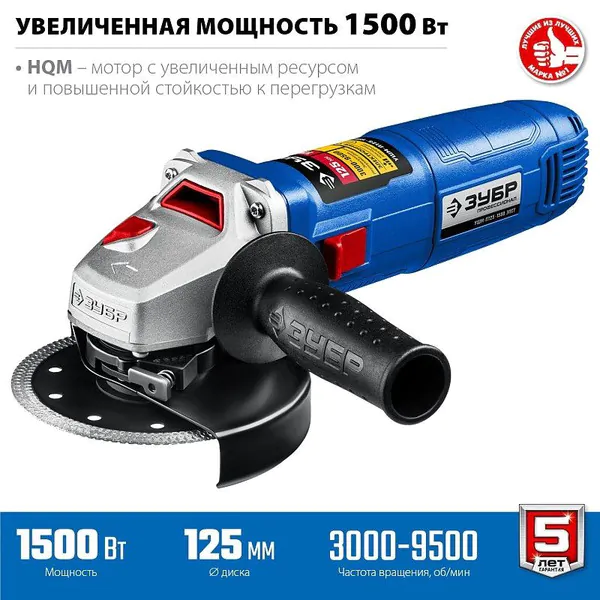 Угловая шлифовальная машина Зубр УШМ П125-1500 ЭПСТ