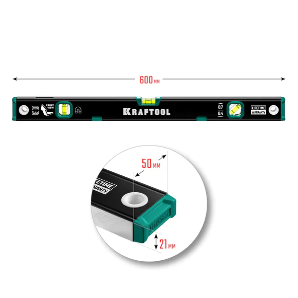 Уровень KRAFTOOL 600мм магнитный усиленный профиль с зеркальным глазком 34785-60