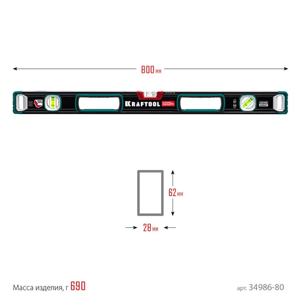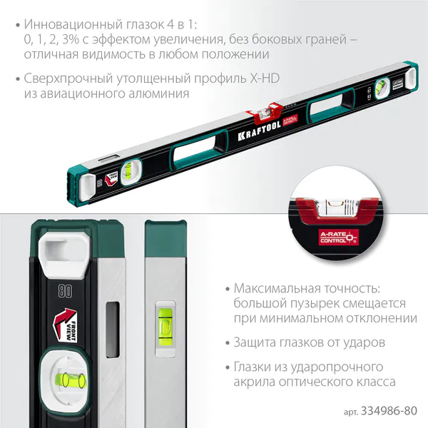 - • уровень KRAFTOOL A-RATE CONTROL 800 мм с зеркальным глазком сверхпрочный 34986-80.
