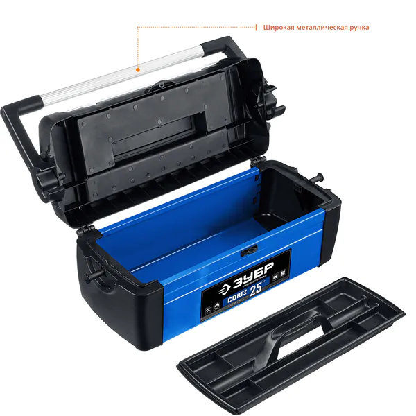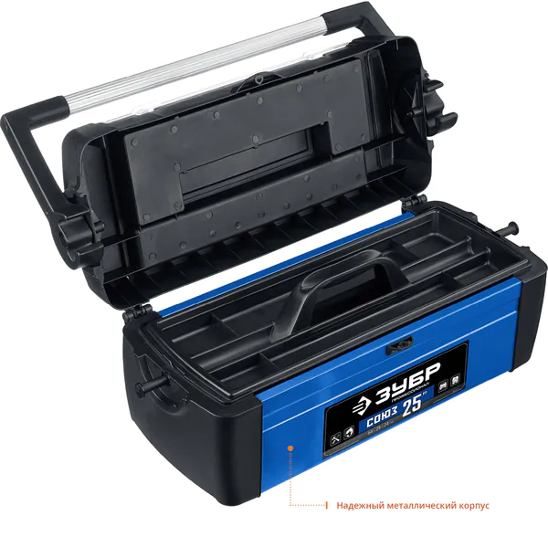 Ящик для инструментов ЗУБР Профессионал СОЮЗ-25, 640 x 250 x 240 мм, 25″ , металлический 38151-25_z01