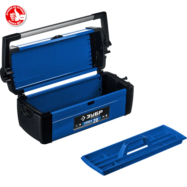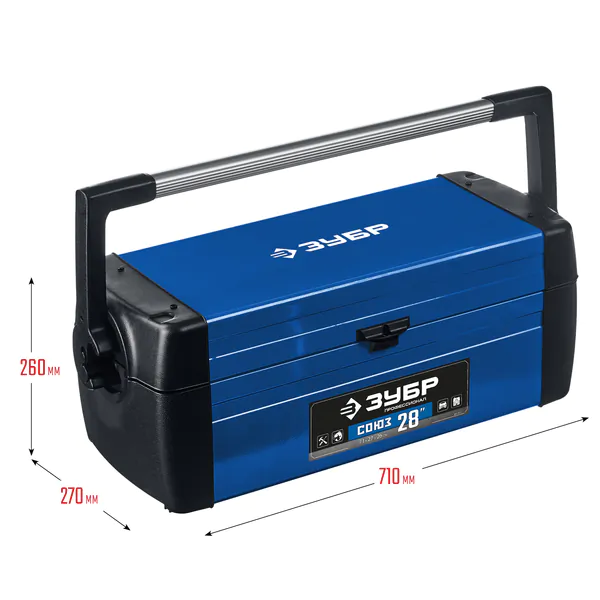 - ЗУБР СОЮЗ-28, 710 x 270 x 260 мм, (28″), металлический ящик для инструментов, Профессионал (38151-28) 38151-28_z01