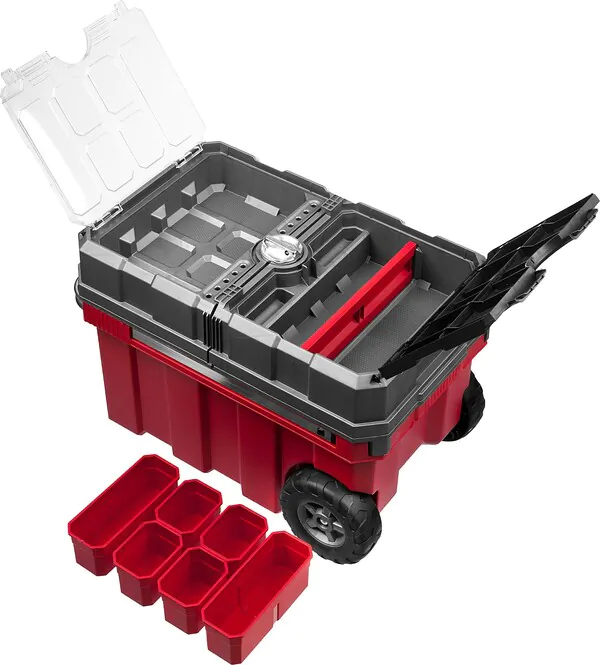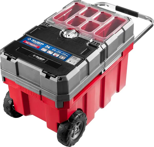 - ЗУБР МЕГАБОКС-24, 616 х 378 х 415 мм, (24″), пластиковый ящик-тележка для инструментов, Профессионал (38133-24)