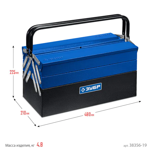 - ЗУБР ЯРУС-5/19, 470 х 210 х 225 мм, (19″), Металлический раздвижной ящик для инструментов, Профессионал (38356-19)