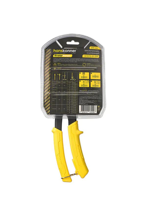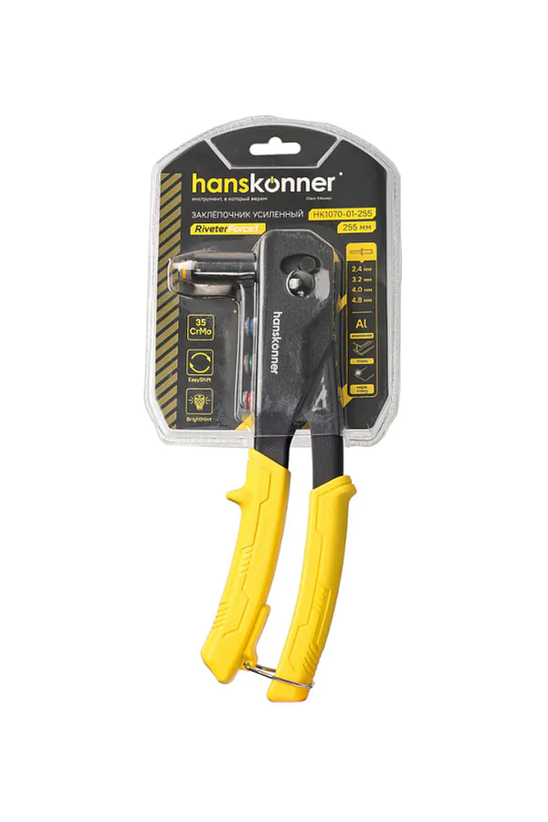 - • заклепочник Hanskonner 255мм, заклепки 2,4/3,2/4,0/4,8 мм, HK1070-01-255.