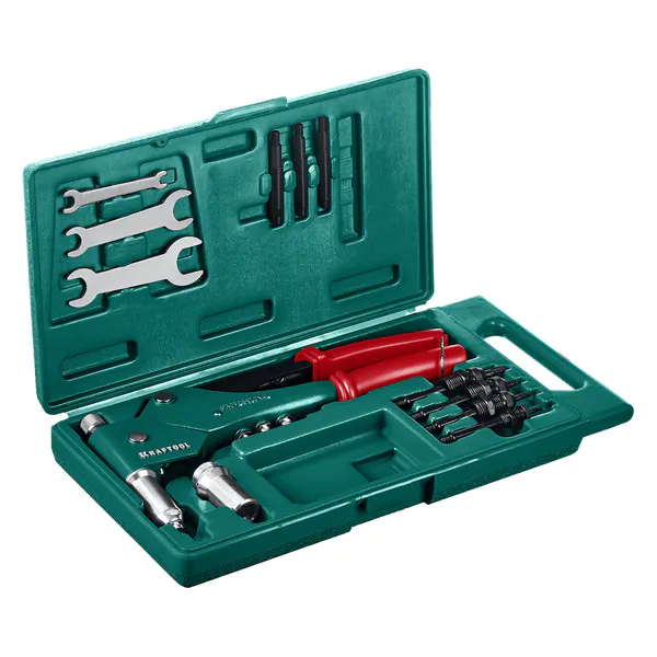 - KRAFTOOL Combo3-M6, 360°, 3 вида заклёпок, комбинированный поворотный заклепочник в кейсе (31178) 31178_z01