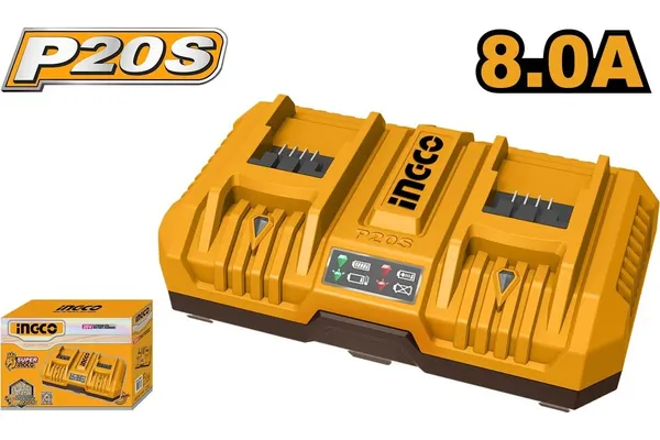 - • зарядное устройство двойное 2х20B 4A+4А INGCO FCLI2082 INDUSTRIAL.