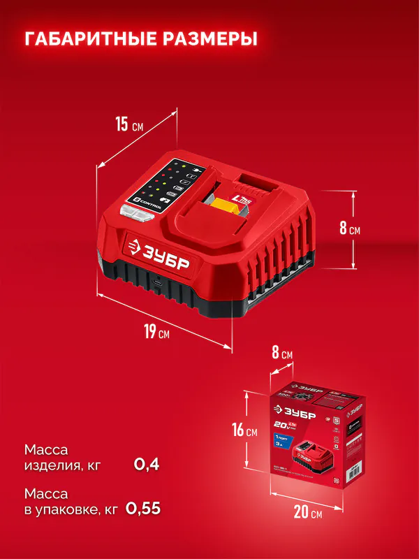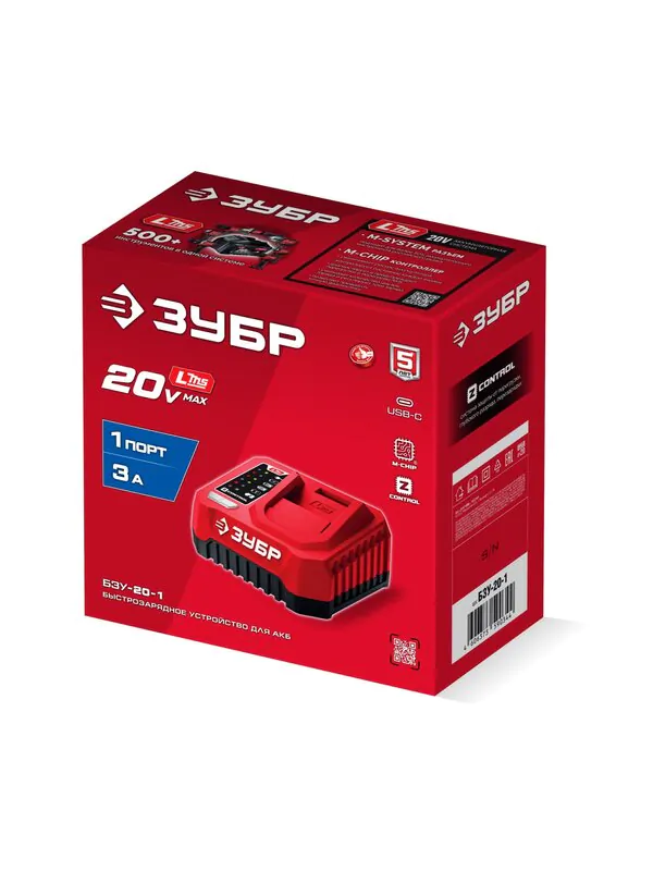 - ЗУБР 20 В, 1 порт, 1 х 3 А, зарядное устройство для LMS АКБ (БЗУ-20-1)