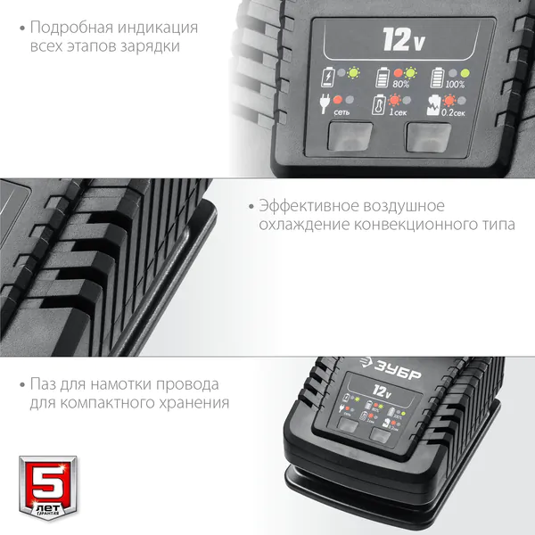 Тип аккумулятораВремя заряда, Ч1Условия гарантии60 месяцевНапряжение питания, ВКоличество постовВыходное напряжение, ВПоддерживаемые артикулы шуруповертовАккумуляторная платформаMax мощность, Вт30ТипУпаковкаПоддерживаемые артикулы батарейUSB разъемИндикатор заряда батареиДаMax ток зарядки, А2ПроизводительЗУБРГабариты товара (ДхШхВ), мм150*130*75Масса нетто, кг0.473Комплектация