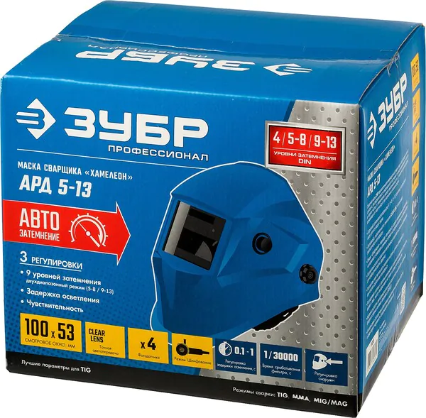 - ЗУБР АРД 5-13, хамелеон, затемнение 4/5-8/9-13, маска сварщика, Профессионал (11070)